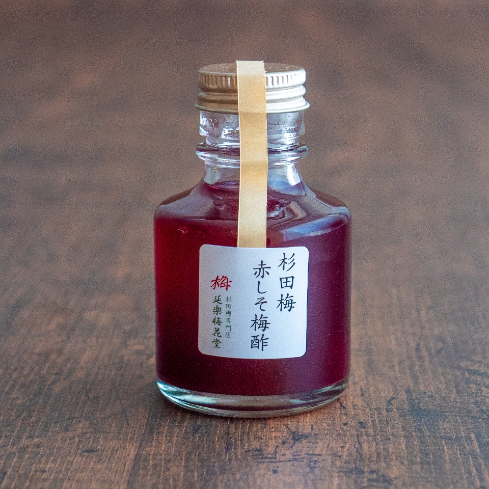 「先人の知恵調味料」編3つめのアイテムは、【延楽梅花堂】が造る「杉田梅赤しそ梅酢」。