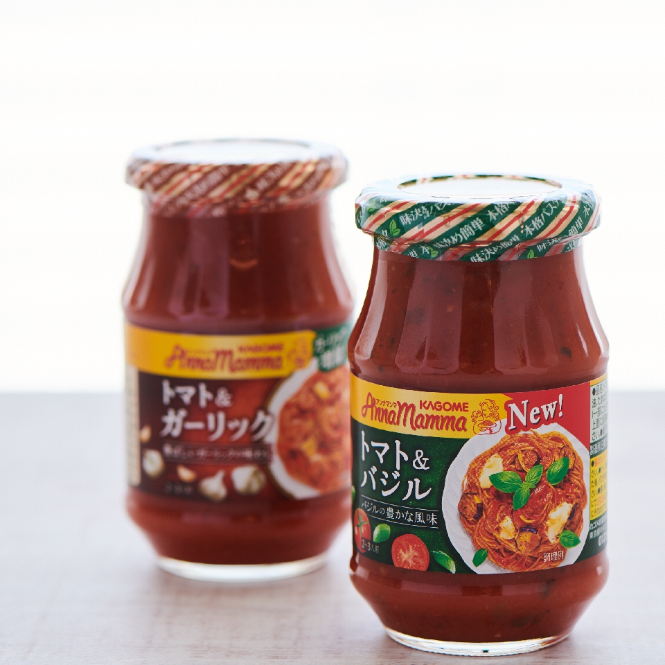 6種類あるフレーバーの中から今回は、最近リニューアルしてさらに美味しくなったと評判の「アンナマンマ トマト&ガーリック」と「アンナマンマ トマト&バジル」のアレンジレシピを紹介します。