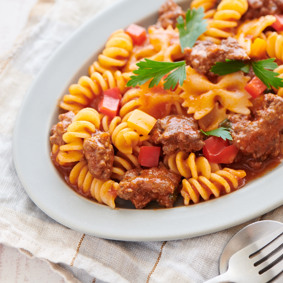 スナップディッシュレシピ②…簡単なのにほめられる!「ゴロっとスパイシーひき肉とトマトソースのパスタ」