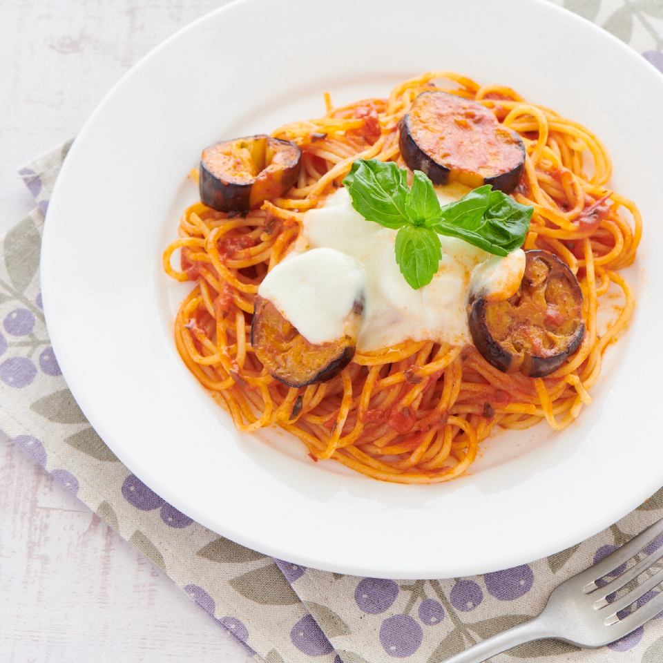 ★カゴメ公式レシピ★ホッと安心する味「なすとモッツァレラチーズのトマトパスタ」