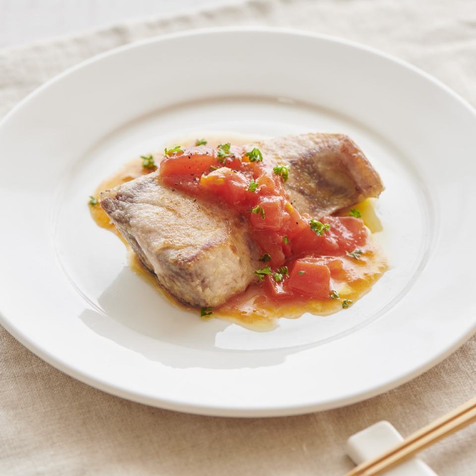 【塩糀パウダー×醤油】でお魚がぐっと格上げ「鰤のムニエルトマト醤油ダレ」