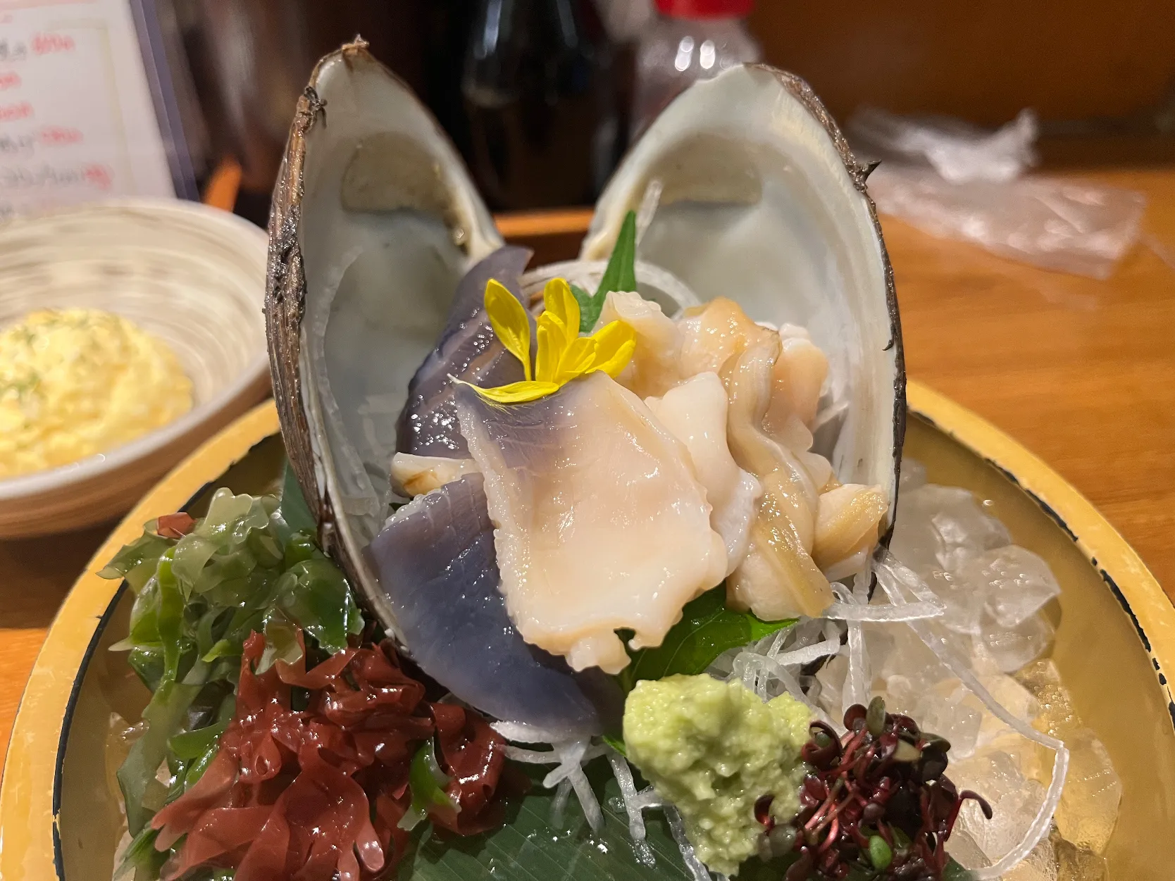 北海道から送ったホッキ貝のお刺身と、お友達からいただ...