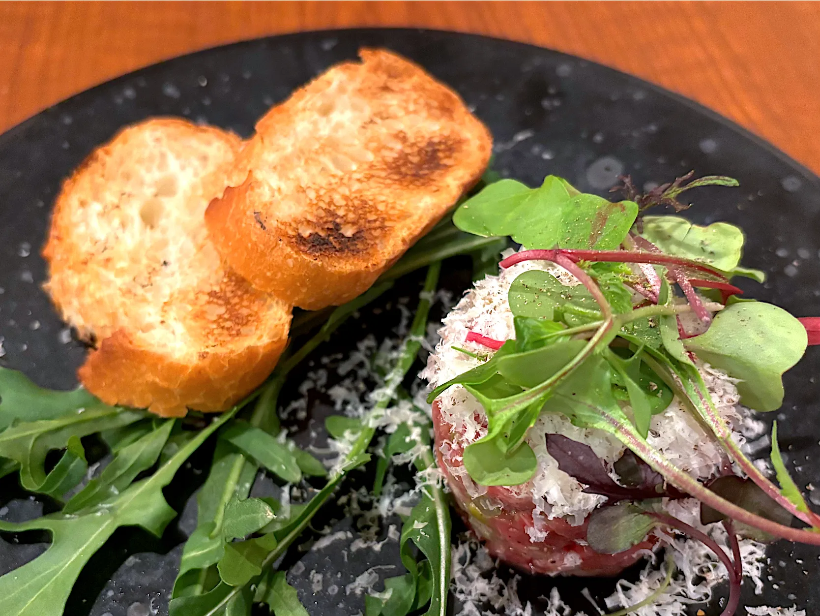 ①2月5日・[お肉のコース🍖✨]・九州産和牛のタルタル ❣️(見えないけど💦ザク切りで食感最高😋)