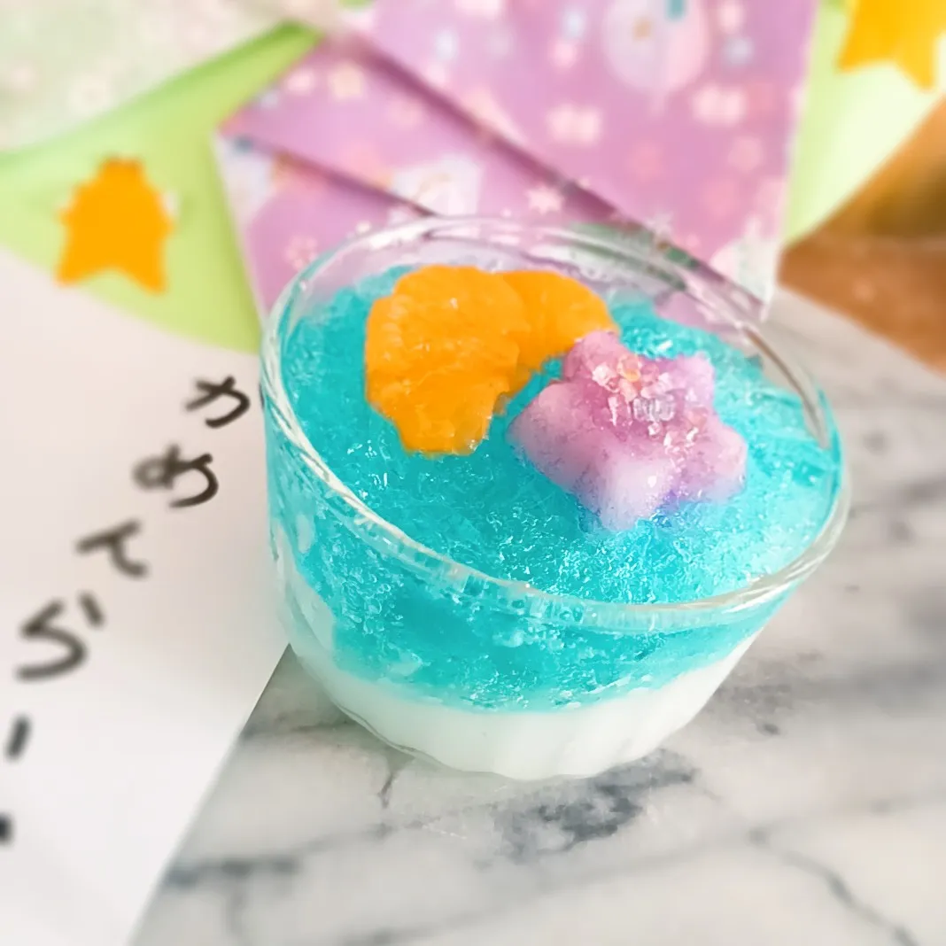 末っ子が幼稚園の給食に出る予定の七夕ゼリーを楽しみにしていたのですが、あいにく体調不良で欠席してしまったので、自宅で作ってあげました🌼*・
