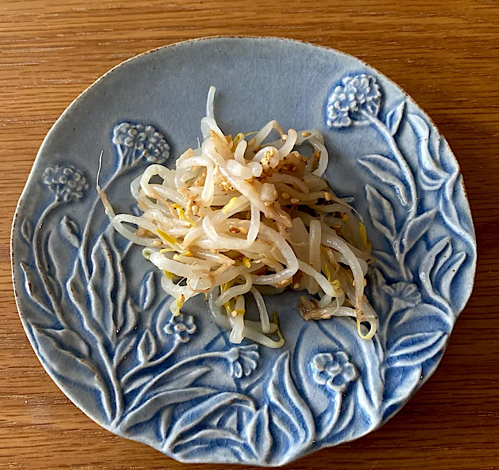 ほんとになんでもない作り置きのもやしナムルを新しくゲットしたお皿にて #マルミツポテリ