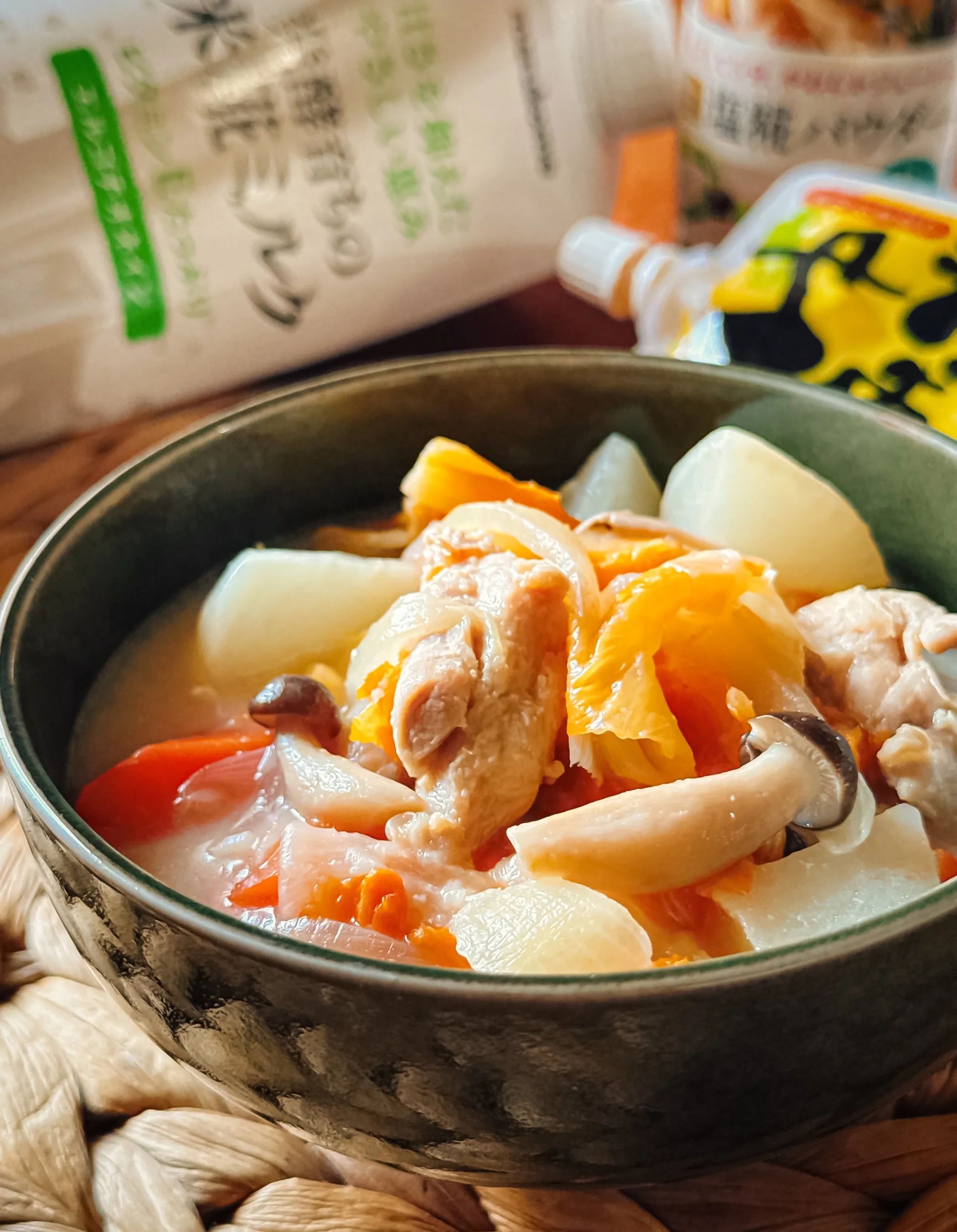 ナンプラーでほのかにアジアンな香りを醸しつつ、ゆずみそのフルーティーな甘酸っぱさと白みそのやさしい甘みとコクが米糀ミルクの甘みやくたくた白菜やほっくり小蕪に寄り添う美味しいスープに大変身(*´▽`人)♥️