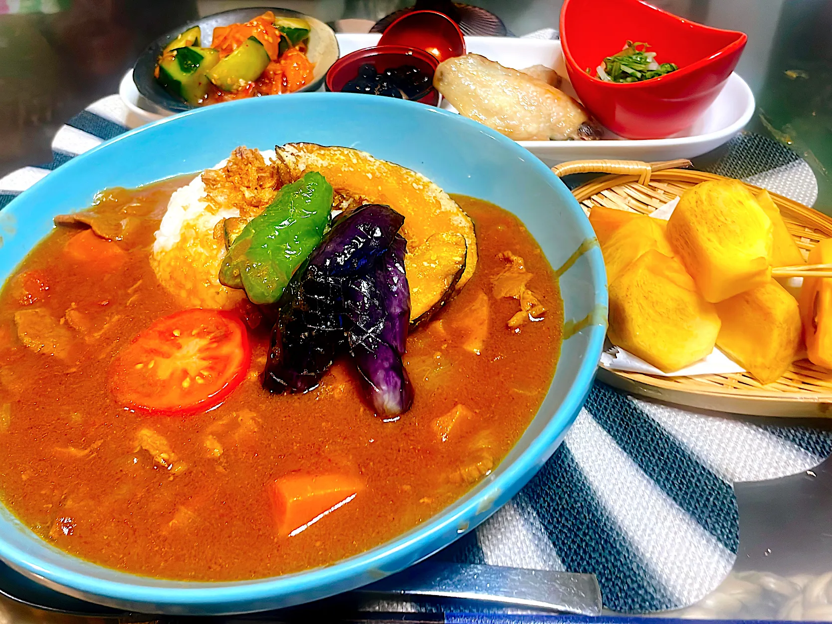 トッピングはかぼちゃ、ナス、ピーマン