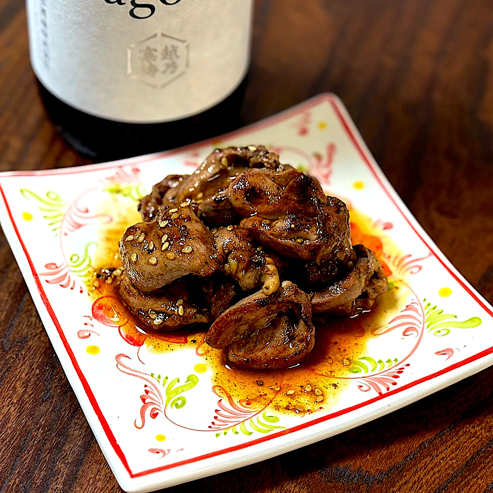 #ハツ #焼肉のタレ #おつまみ #鶏肉 #日本酒 #越乃寒梅 #ソーダ割