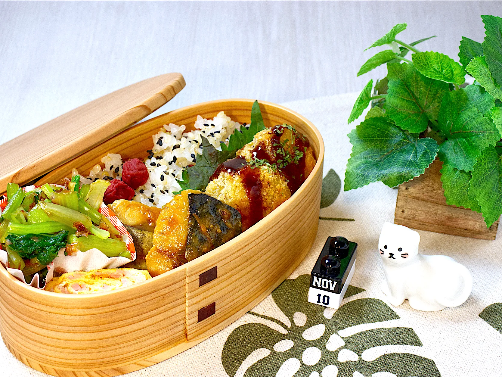 冷凍鯖がちょっとしかなかったのと、小さいジャガイモが残ってたので鯖味噌とコロッケに。なんだか取り止めのないお弁当です…。