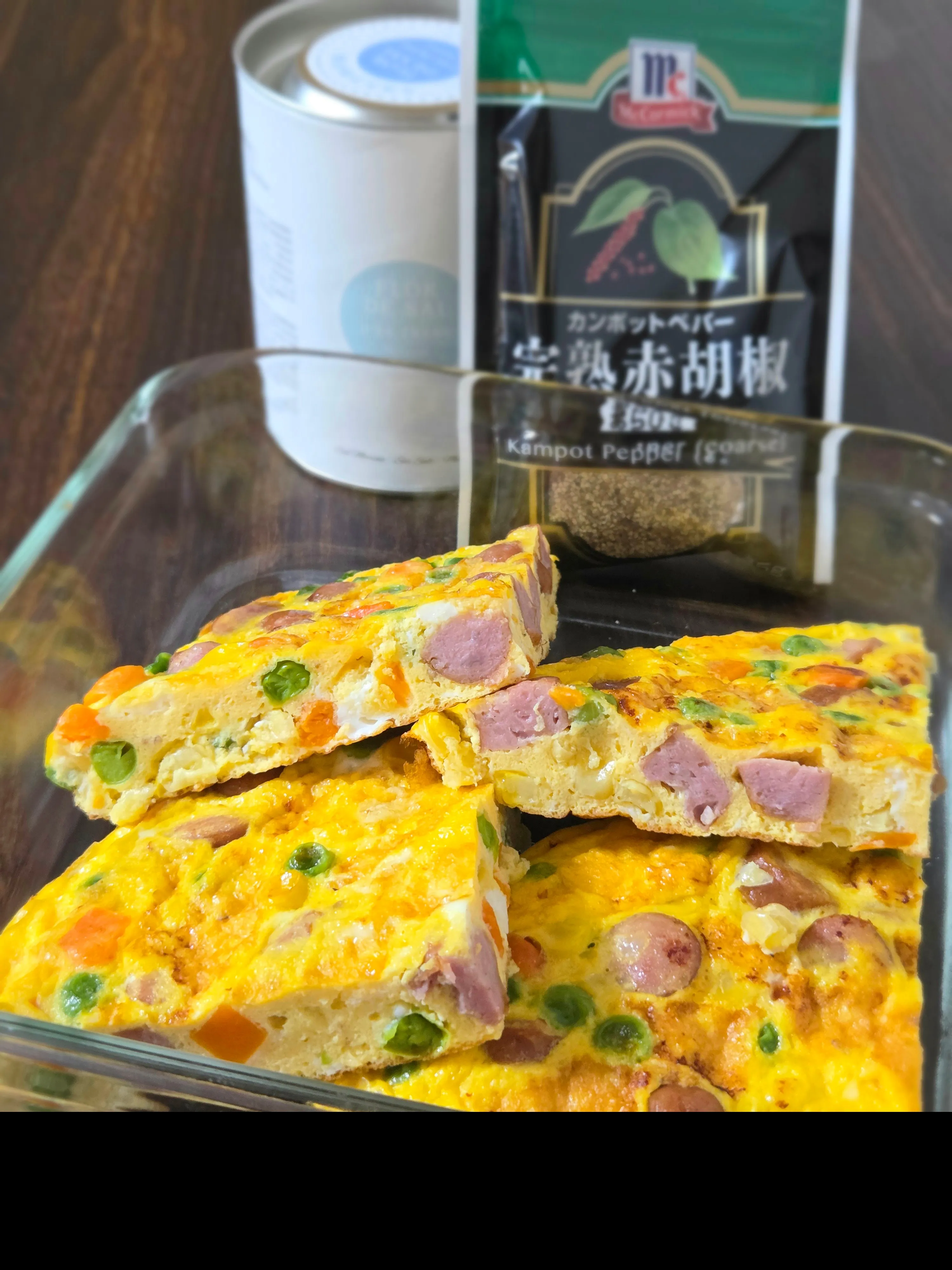 #晩ご飯 #スパニッシュオムレツ #モニター当選 #マヨルカ島の塩 #カンポットペッパー #卵 #ミックスベジタブル #ウインナー #粉チーズ #PR