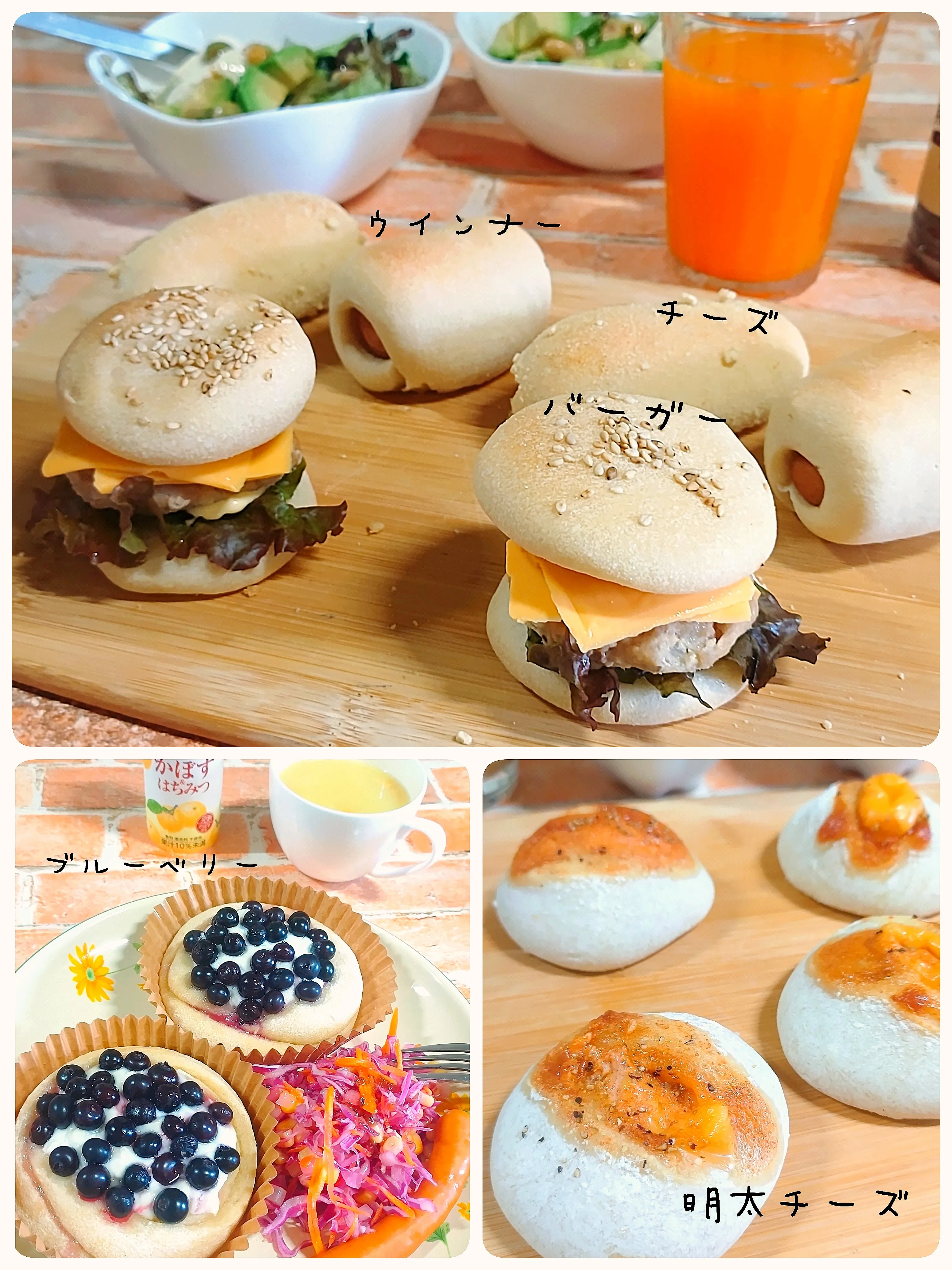 ハンバーガーもひと口ソーセージもブルーベリーも明太チーズもめちゃめちゃ美味しそう😆✨