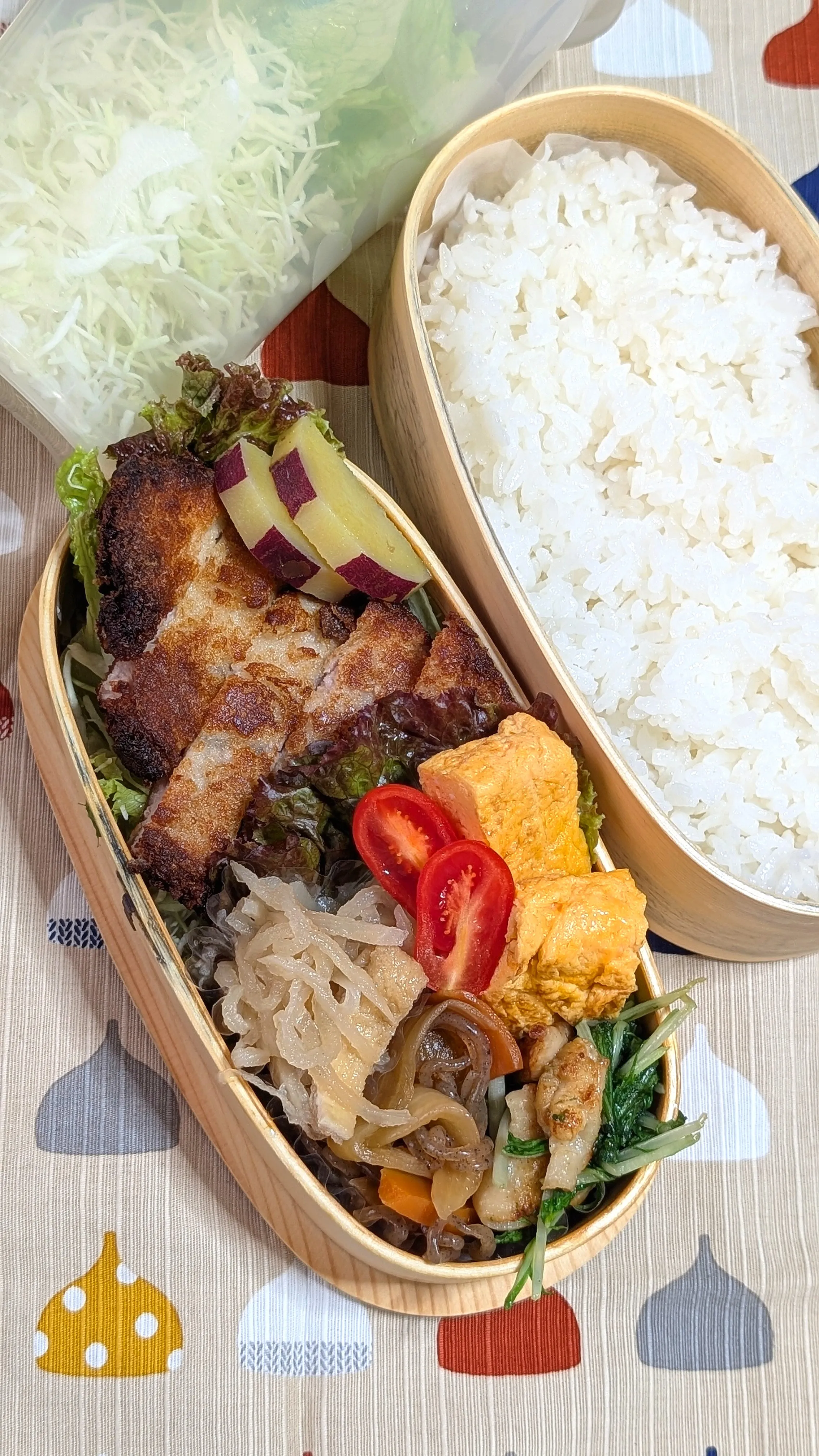 #とんかつ #とんかつ弁当 #だし巻き玉子#水菜と鶏皮の塩糀炒め#しらたききんぴら #切り干し大根#アンジェレトマト #旦那弁当 #旦那弁当簡単 #旦那弁当毎日 #だんな弁当 #だんな弁当簡単 #だんな弁当毎日 #わっぱ弁当 #わっぱ #減塩 #減塩メニュー #減塩料理 #減塩食 #減塩生活 #減塩レシピ #減塩弁当 #減塩しょうゆ