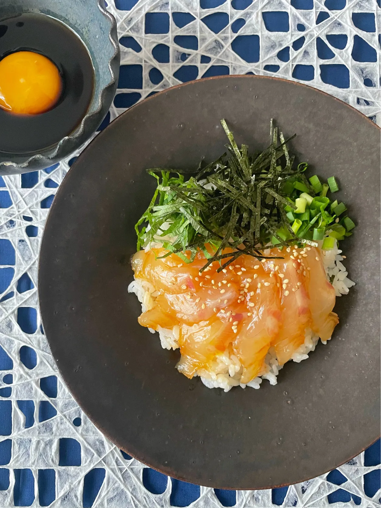 白ゴマ、海苔、ネギ、紫蘇をトッピングして少しタレを足して食べればもう優勝🥇