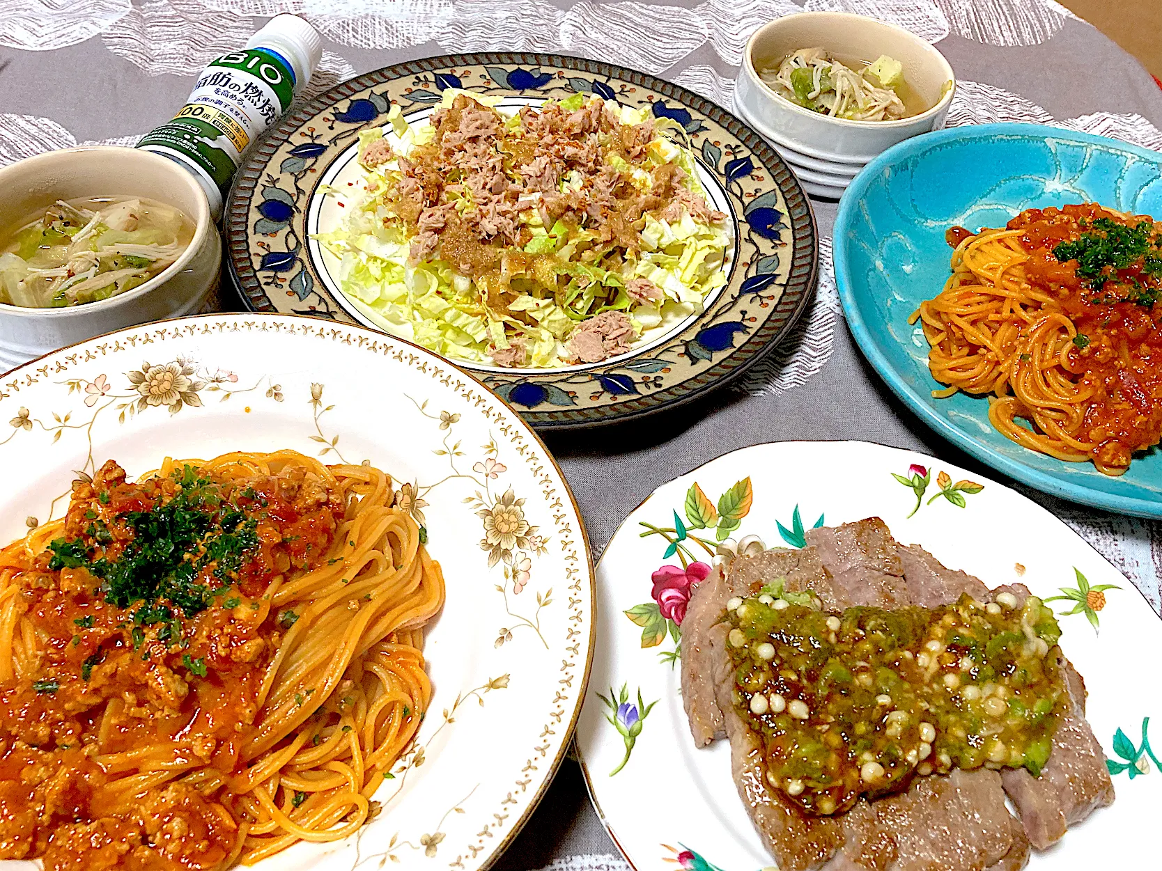 白菜の千切りにツナのせてオリーブオイルとつぶみそであっさりサラダがお肉にも合いました。