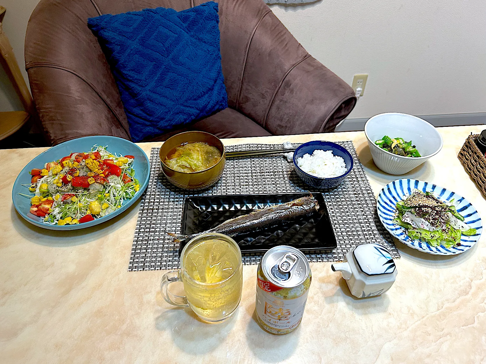*さんまと鯖、さつまいもごはん、冬瓜秋のお魚和定食♪...