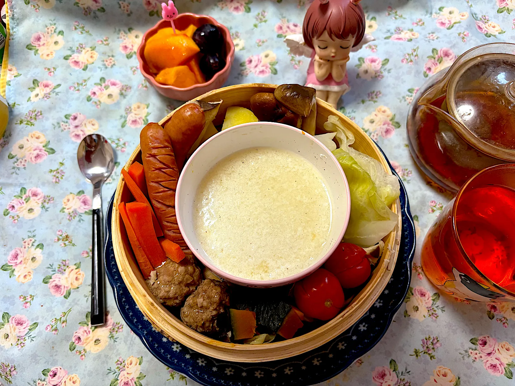 キャベツ、かぼちゃ、じゃがいも、人参、生椎茸、えのき、茄子、トマト、ウインナー、ミニハンバーグ
