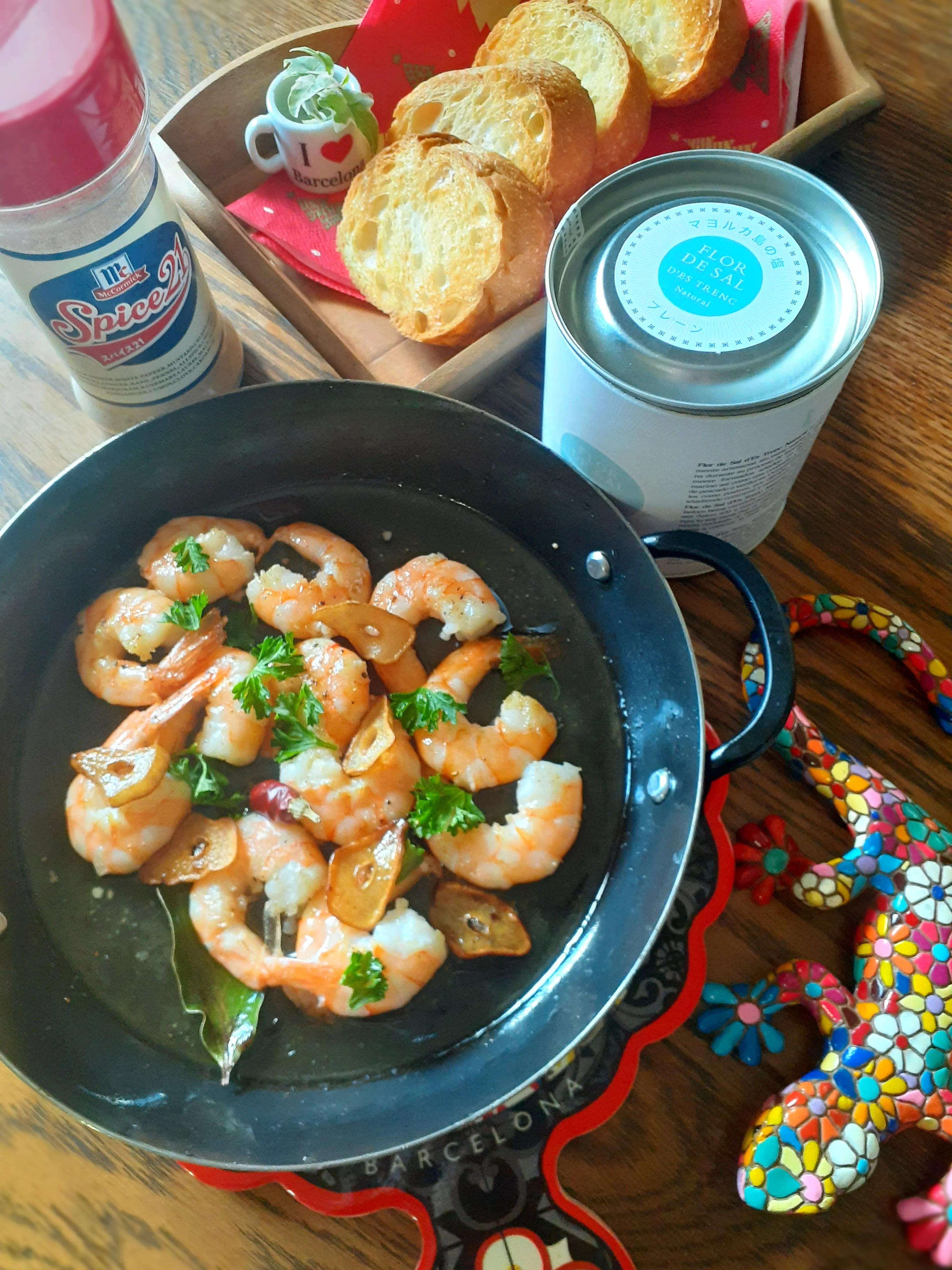 海老とオイル🦐マヨルカ島の塩にスパイス21