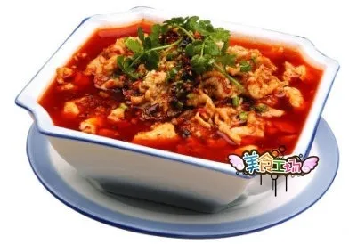 【水煮肉片】1.将鸡蛋清和淀粉调料调匀成糊,涂抹在肉片上;2.将花椒、干辣椒慢火炸,待辣椒呈金黄色捞出切成细末3.用锅中油爆炒豆瓣辣酱,然后将白菜叶,调料放入;4.随即放入肉片,再炖几分钟,肉片熟后,将肉片盛起,将辣椒、花椒末撒上;5.用植物油烧开,淋在肉片上,即可使麻、辣、浓香四溢。