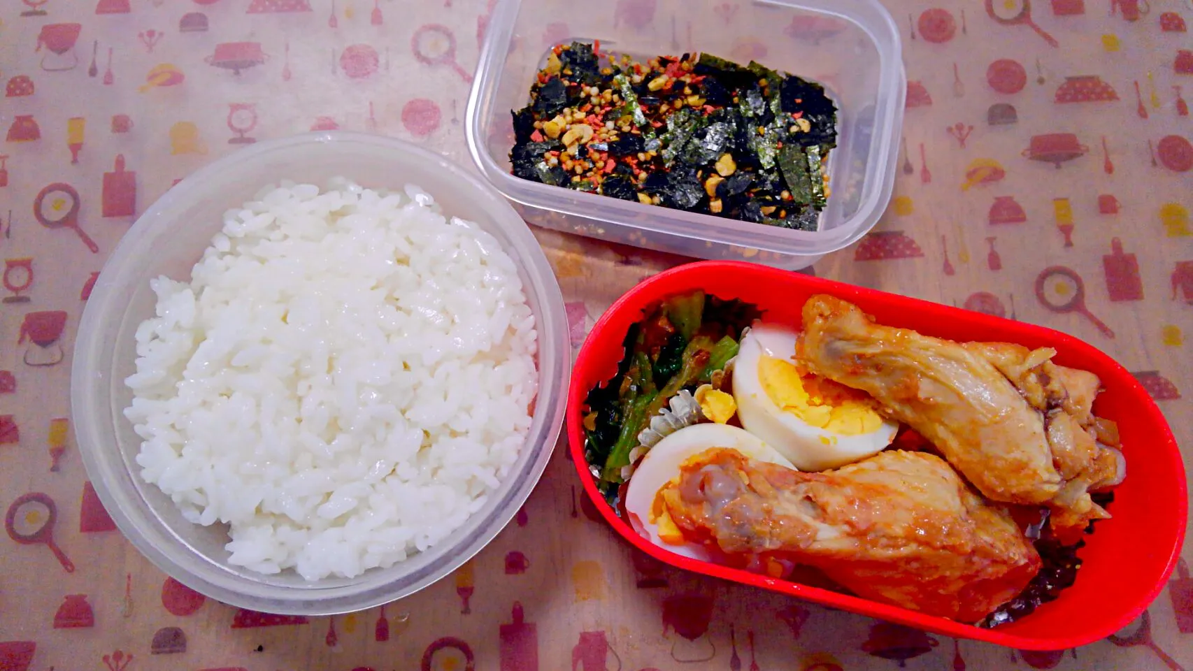 小松菜のおひたし ゆで卵 鶏手羽元のオーブン焼き
