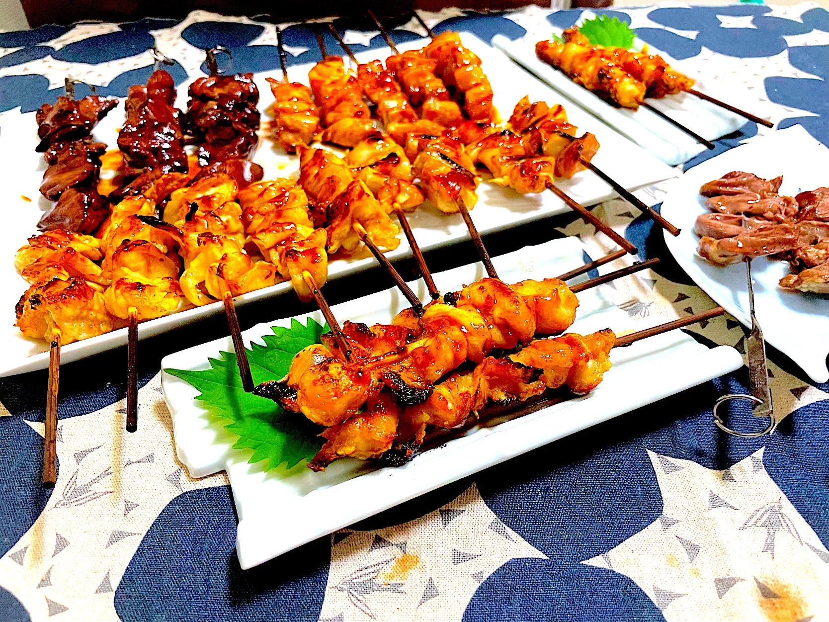 と言っても、ねぎま、もも、鶏皮、ぼんじりは冷凍品で、そのままガスコンロで焼き、レバーとハツ(心臓)は、鶏肝を1パック買って自分で串を打ちました。