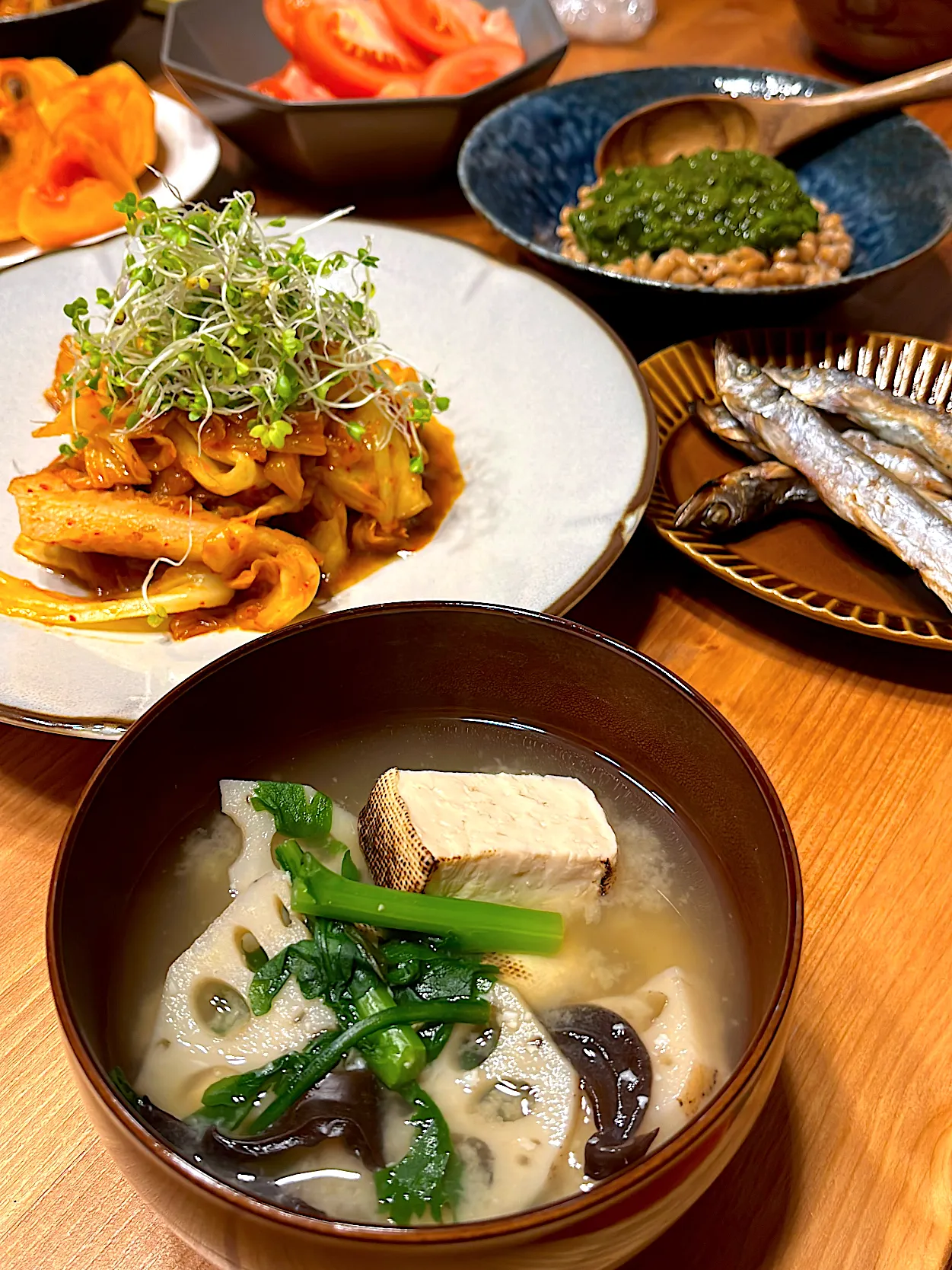 今日の朝ごはん(ごはんは新米・高知県産コシヒカリ、辛...