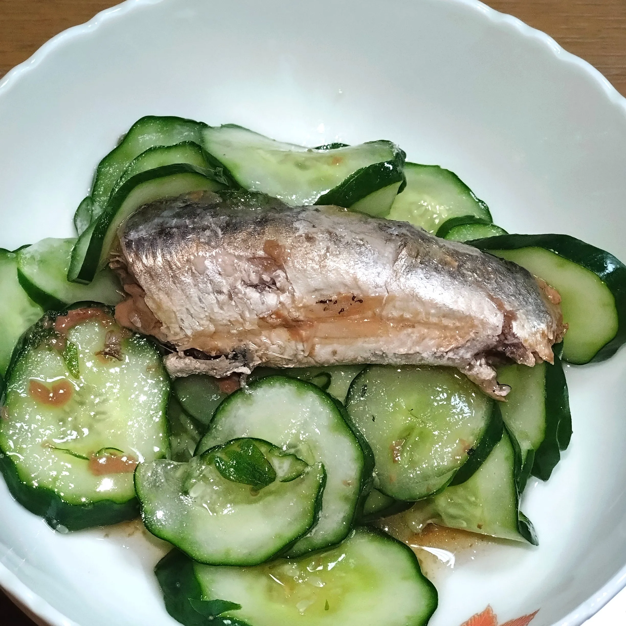 きゅうりの塩もみにイワシの缶詰のせたやつ。