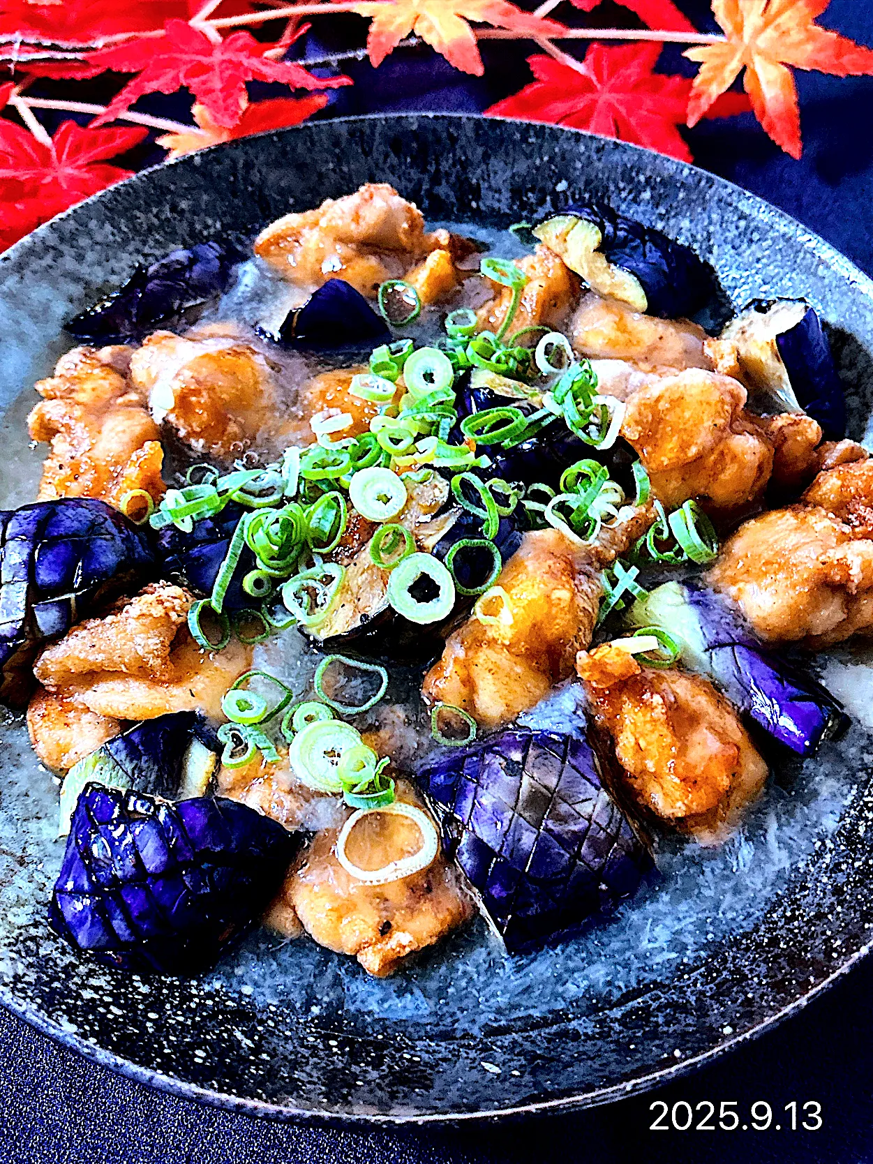 オーロラさんの料理 とり唐揚げと茄子のみぞれ煮