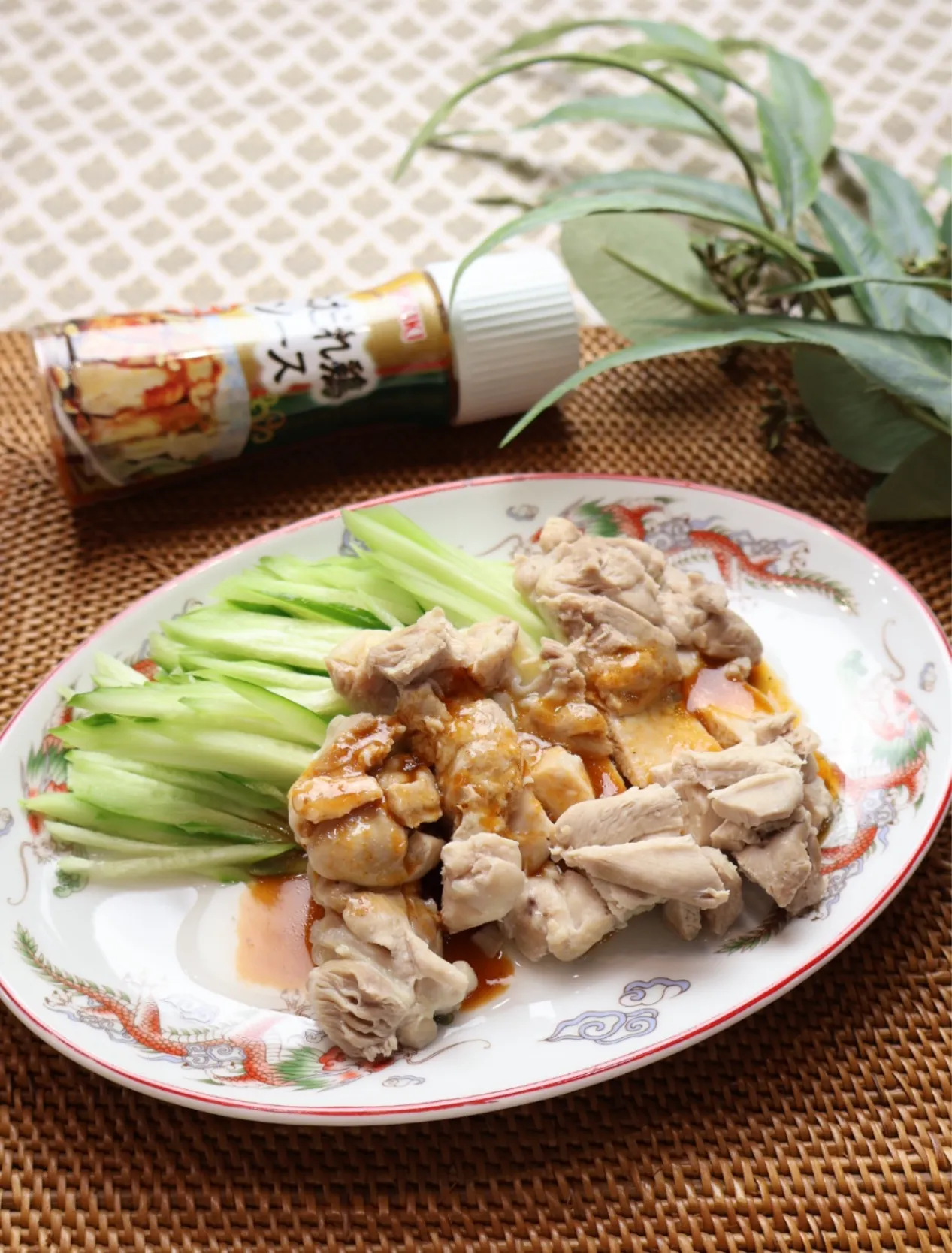茹でた鶏もも肉にユウキ食品のよだれ鶏ソースをかけただけ(⊙ꇴ⊙)!!