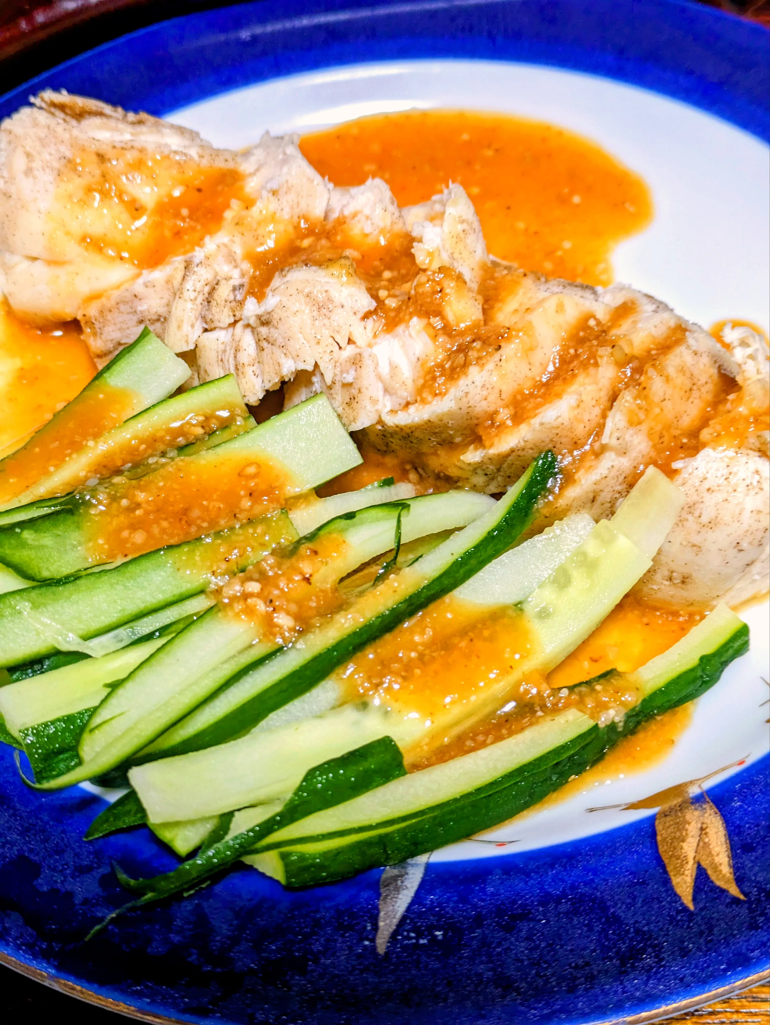 胸肉茹で鶏も、柔らかくジューシーに出来上がりました😚