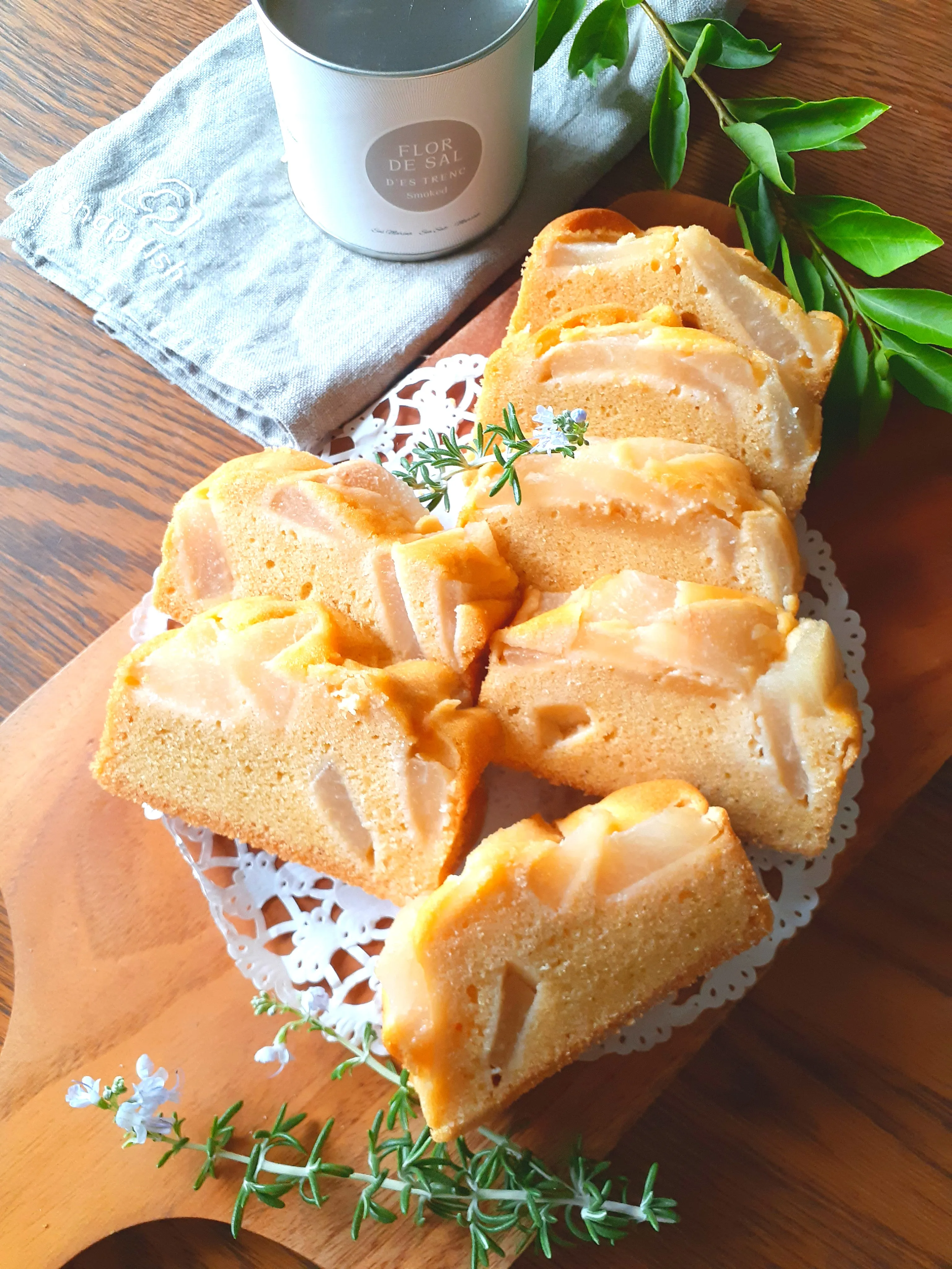 頂き物の栃木産かおり梨、コンポートにしたものをトッピングして焼きました💗シンプルなパウンドなので焼き上がりにコンポートのシロップ塗りましたこのしっとり感が伝わりますか?