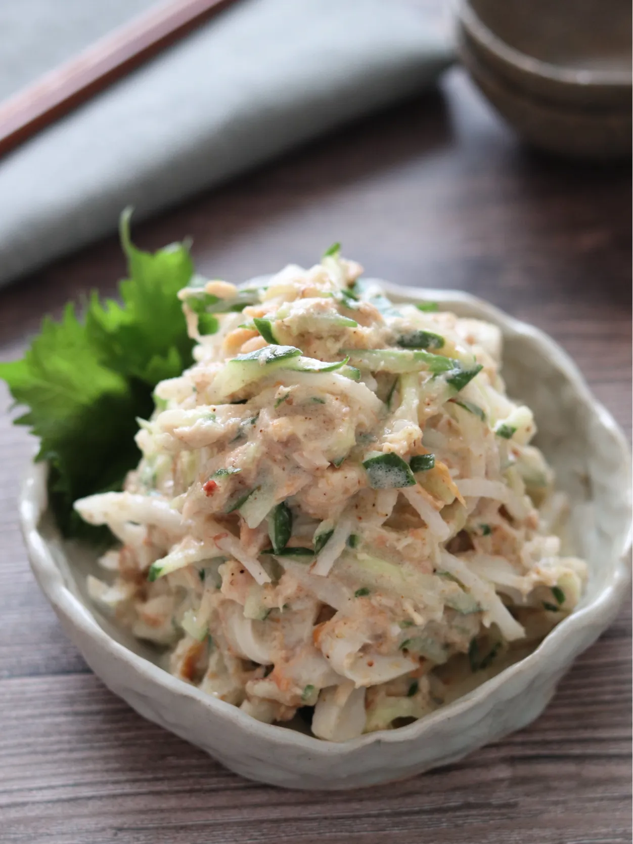 大根ときゅうりは、塩もみや水けを絞る必要がないので簡単!さっとペーパータオルで水けをとるだけでOK!かつおぶしや、すりごまが水分を吸ってくれます♪
