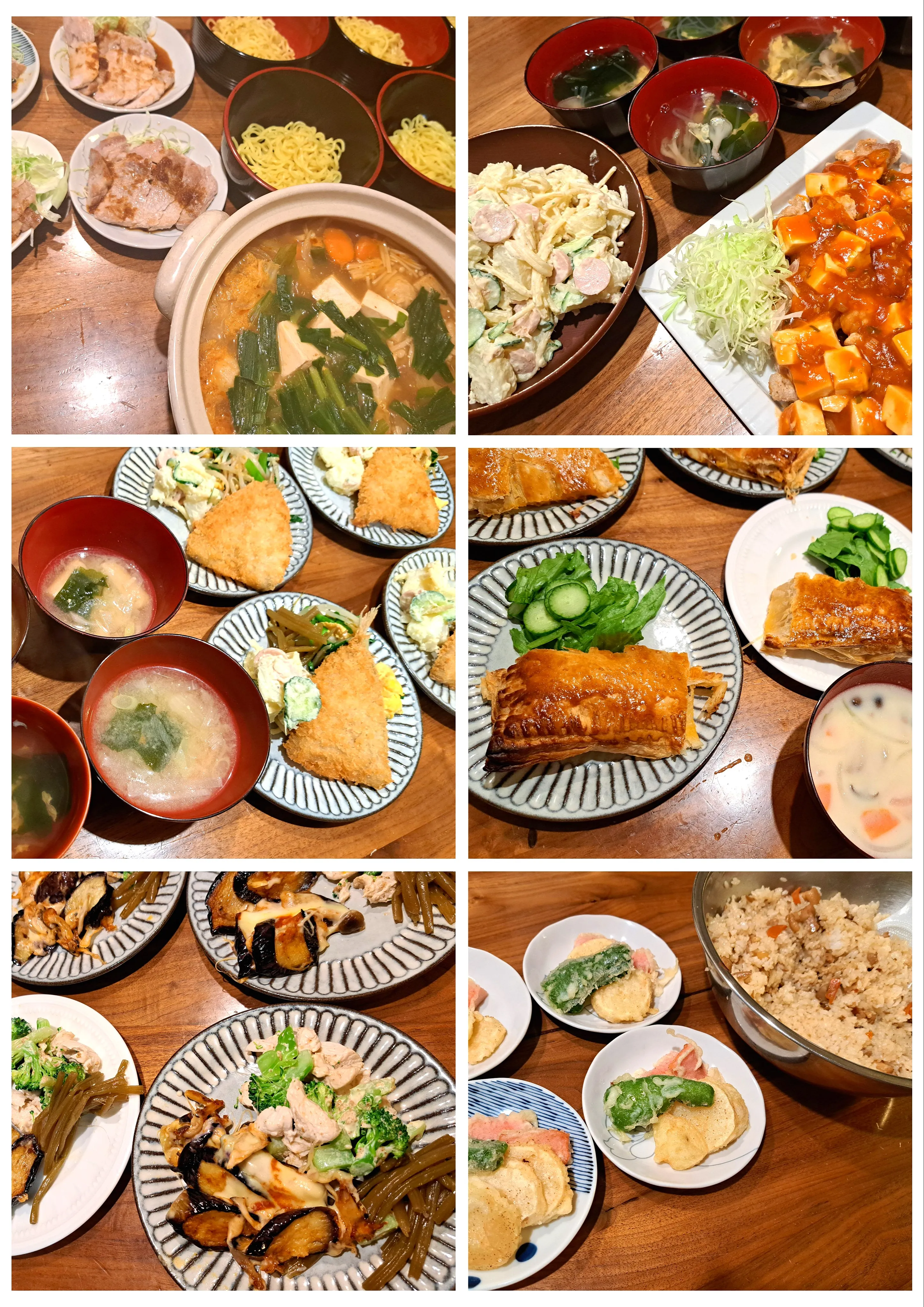 #しょうが焼き#チリソース#スパサラ#ミートパイ#混ぜご飯#天ぷら
