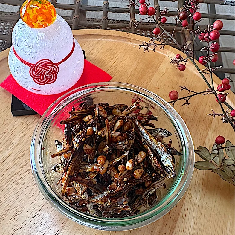 オリジナルは少し大きめのちりめんじゃこにカシューナッツなんだけどね、お正月だからごまめと松の実が縁起物で良いでしょ😆