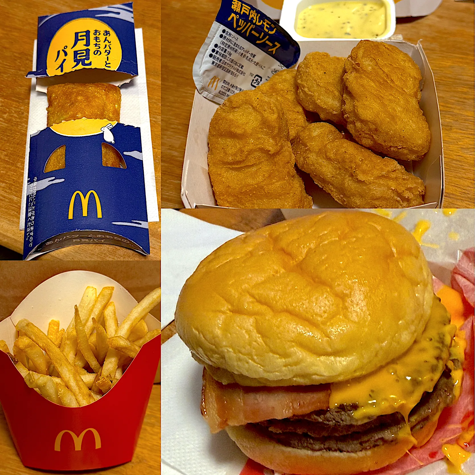 とろ旨すき焼き月見バーガー  ナゲット  ポテト  あんバターとおもちの月見パイ|るみおんさん