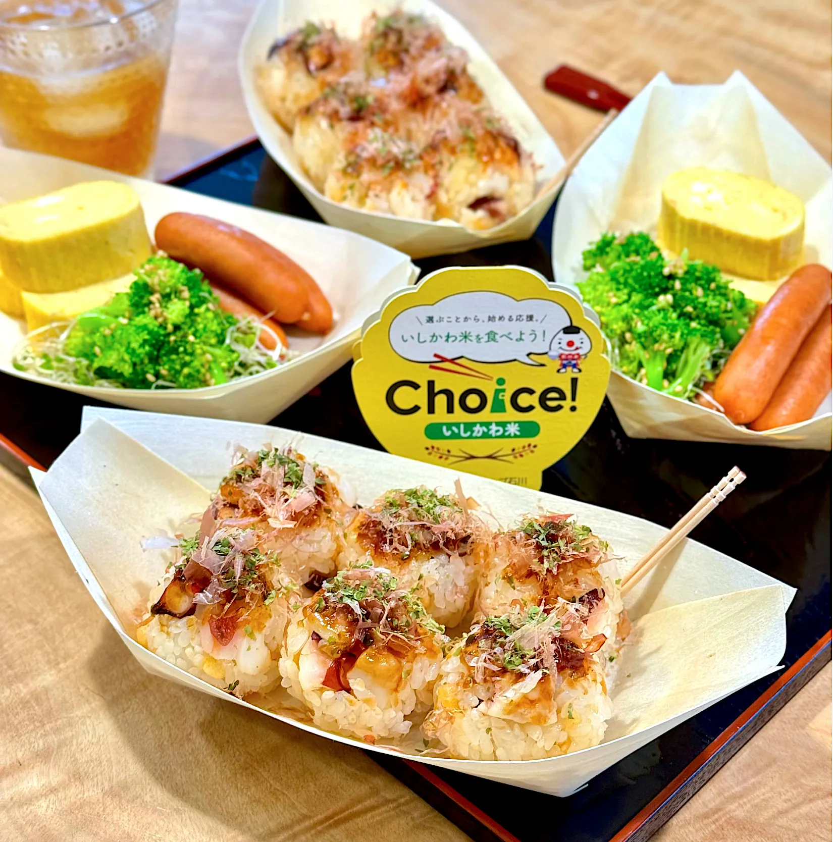 ひと口サイズに握って、ソース、鰹節、