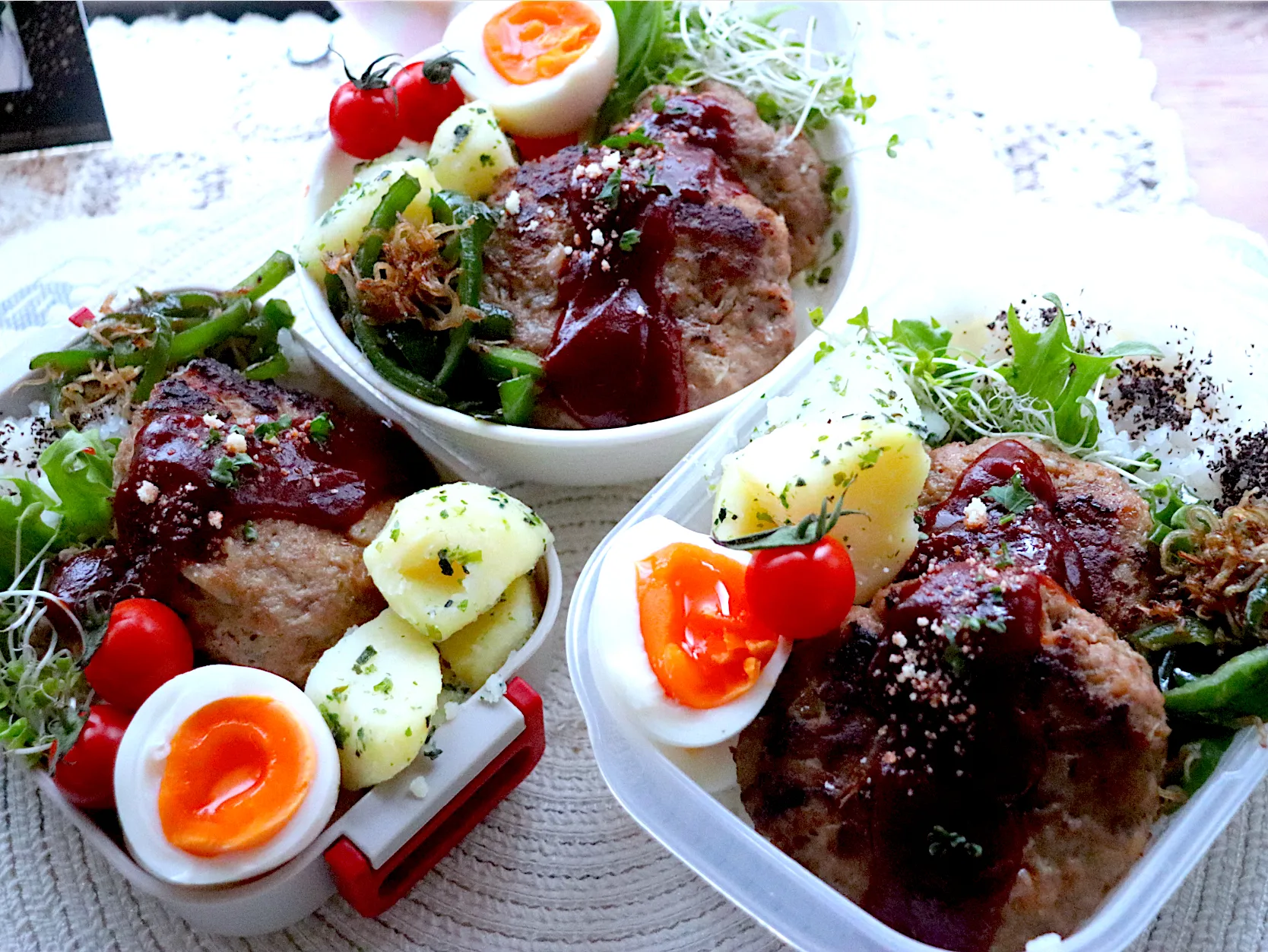 ピーマンじゃこ炒め、のり塩ポテト、ゆで卵