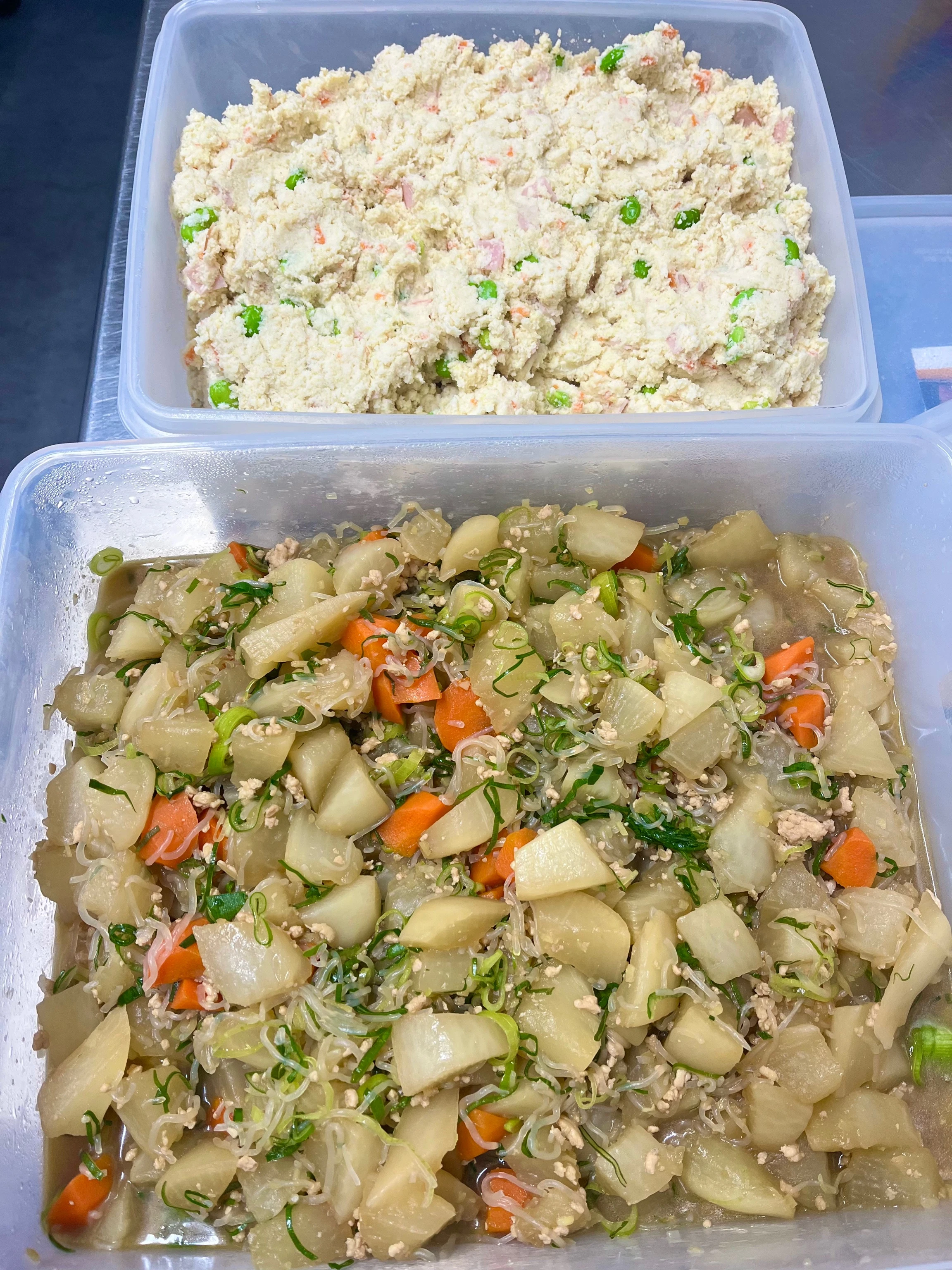 ハム、にんじん、玉ねぎ、枝豆