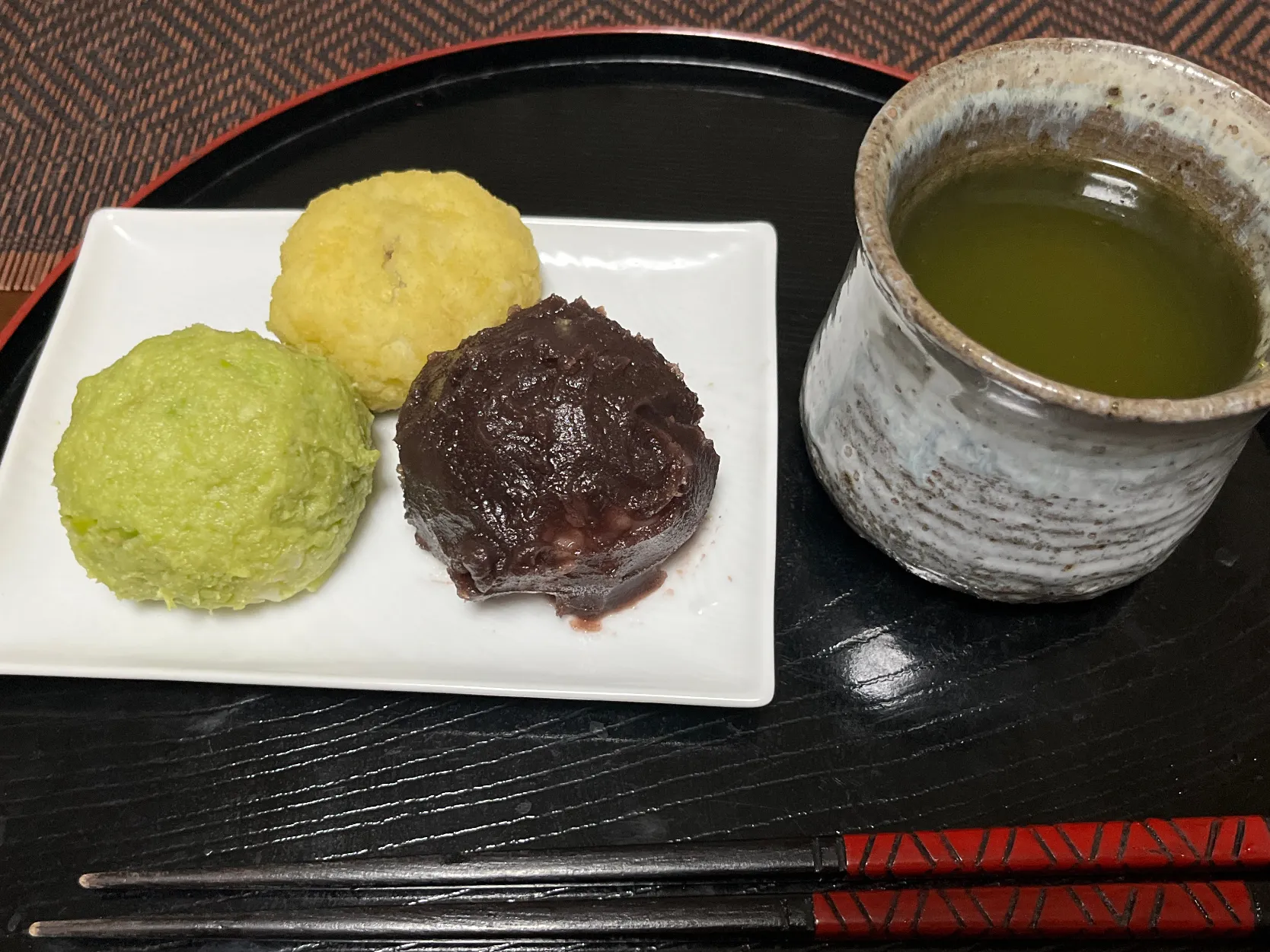 (季節外れの)ご飯でおはぎ風で12月生まれさんお誕生...