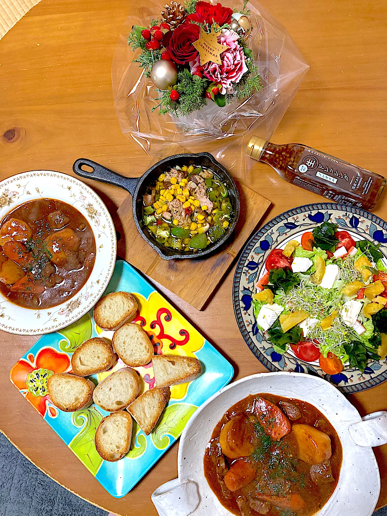 朔ちゃん不在(韓国からメッセージくれた💗)の為いつものように2人でお家でお祝い。