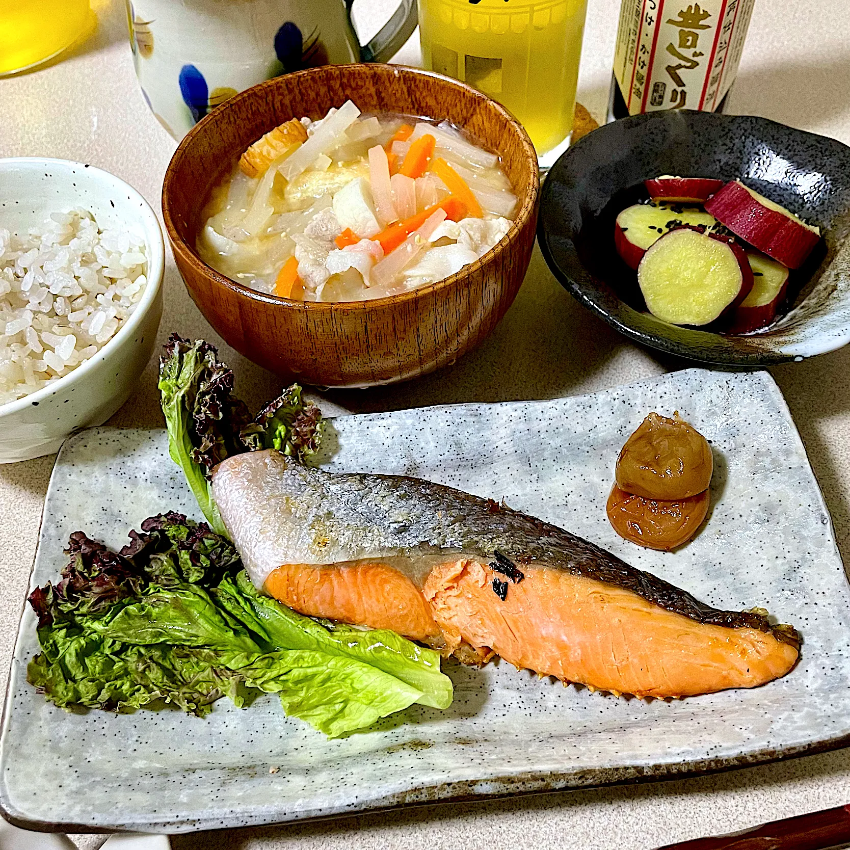 (前冬の酒粕、大根、人参、ちくわ、こんにゃく、薄揚げ、旨み和豚小間切れ)