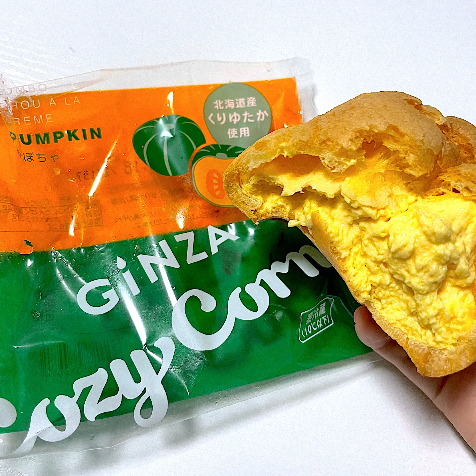 中のかぼちゃカスタードはカスタード感強いけどかぼちゃ感もありつつバニラの香りもして美味しかった。カスタードぎっしりで嬉しいね。 #スイーツレビュー
