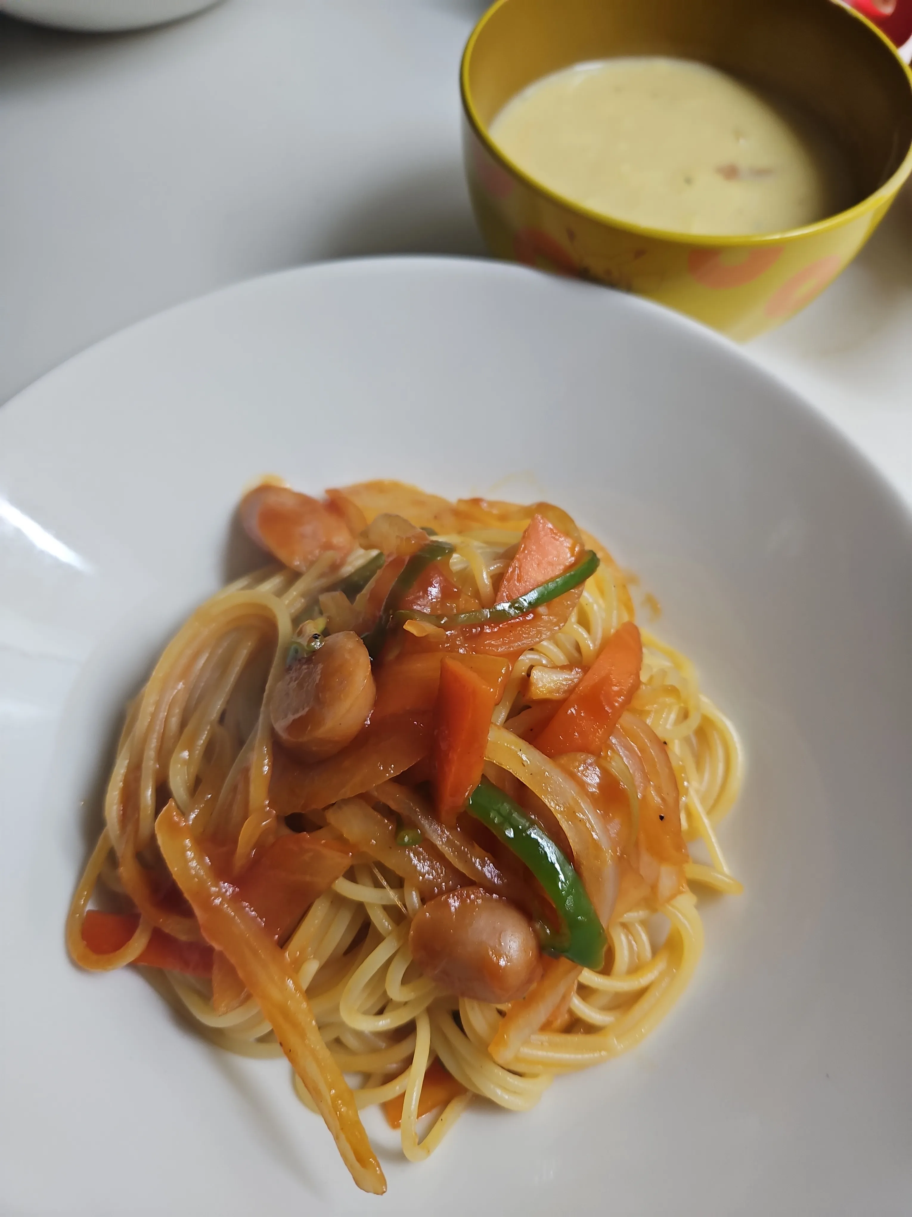 ☆夕飯☆ナポリタン、コーンスープ|ショコラさん