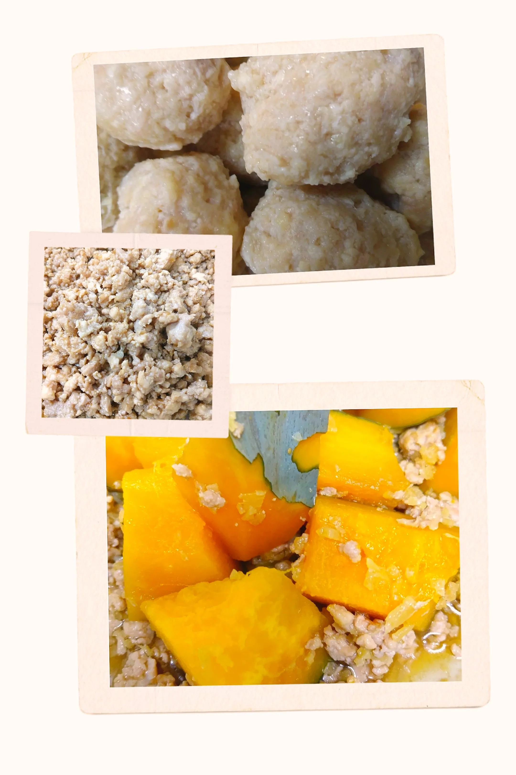 鶏挽き肉で三品 /つくね(ももと胸肉)/そぼろ(ももと胸肉)/かぼちゃのそぼろ煮(もも)🐱