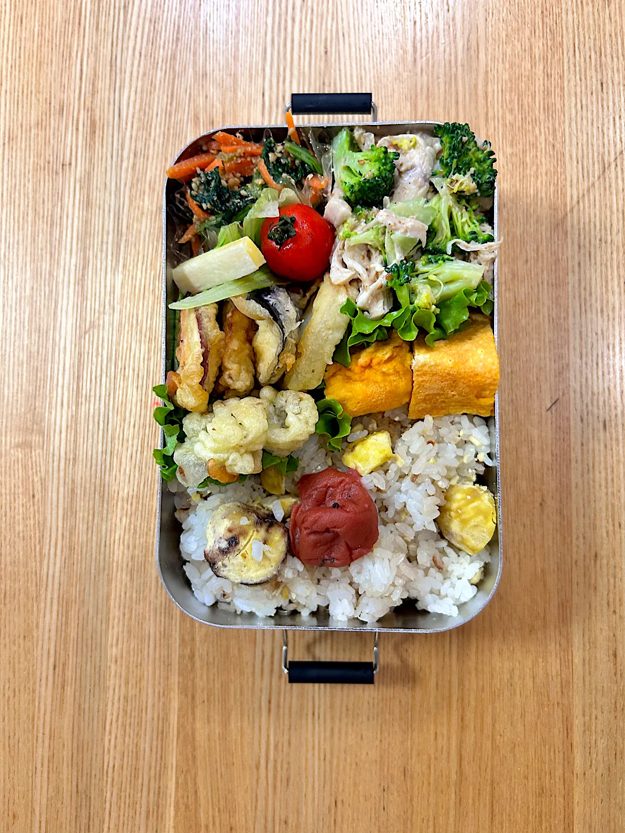 ✴︎小松菜人参胡麻和え*卵焼き*天ぷら←昨日の残り