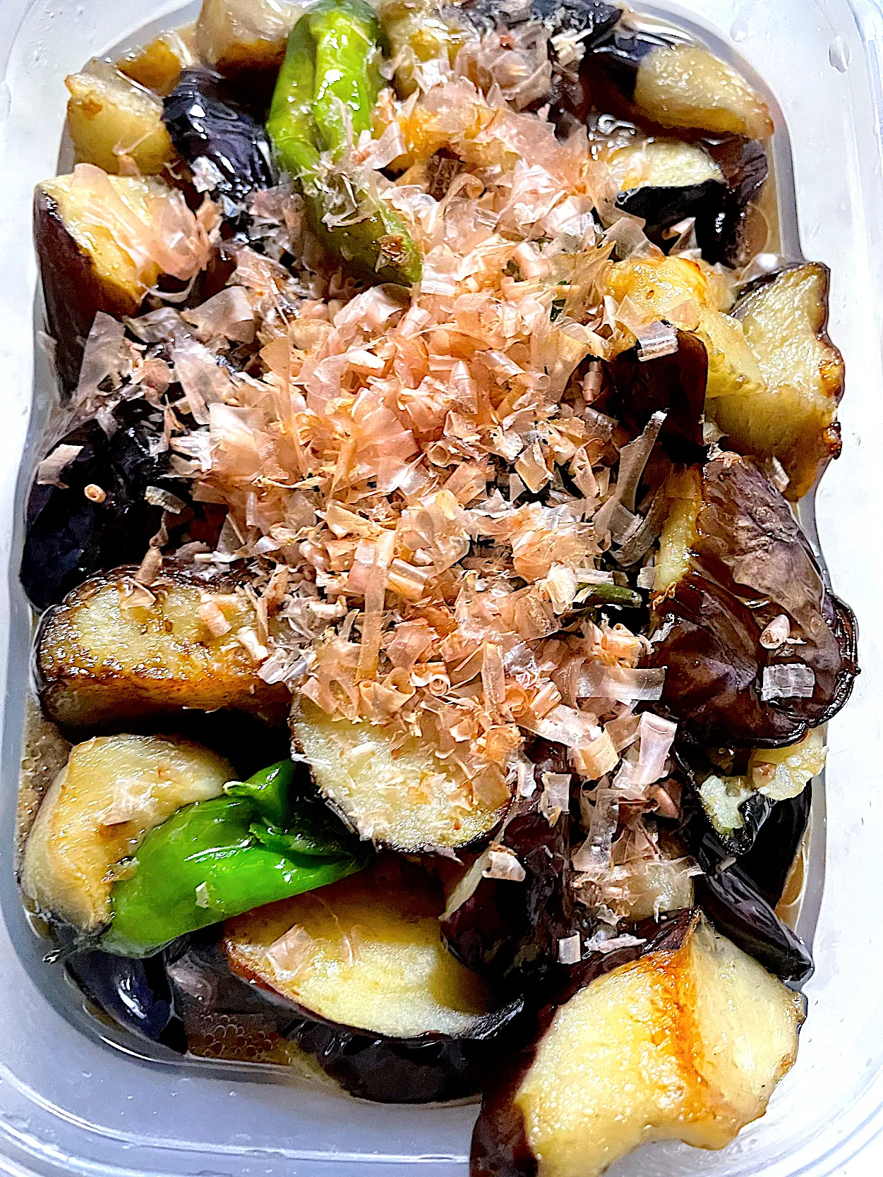 茄子の揚げ浸しと蒸し南瓜のうどん 鶏焼豚&茹で卵トッ...