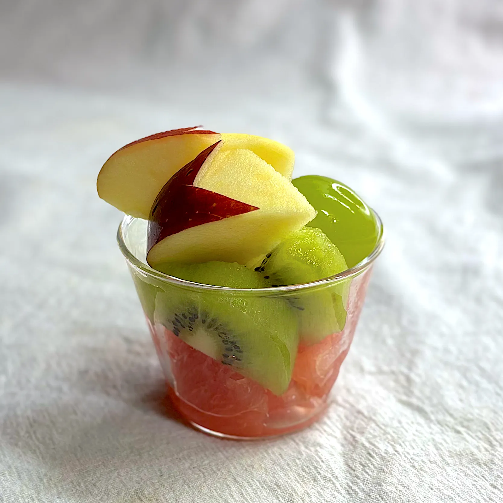 今朝の娘のフルーツです。林檎はミニうさぎ