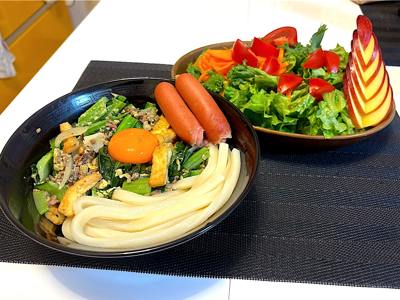挽肉の代わりに大豆ミートを使ってみました〜全く違和感なしで美味しくできました❣️ #自宅創作うどん #うどん #野菜中心生活 #サラダ🥗 #サラダ