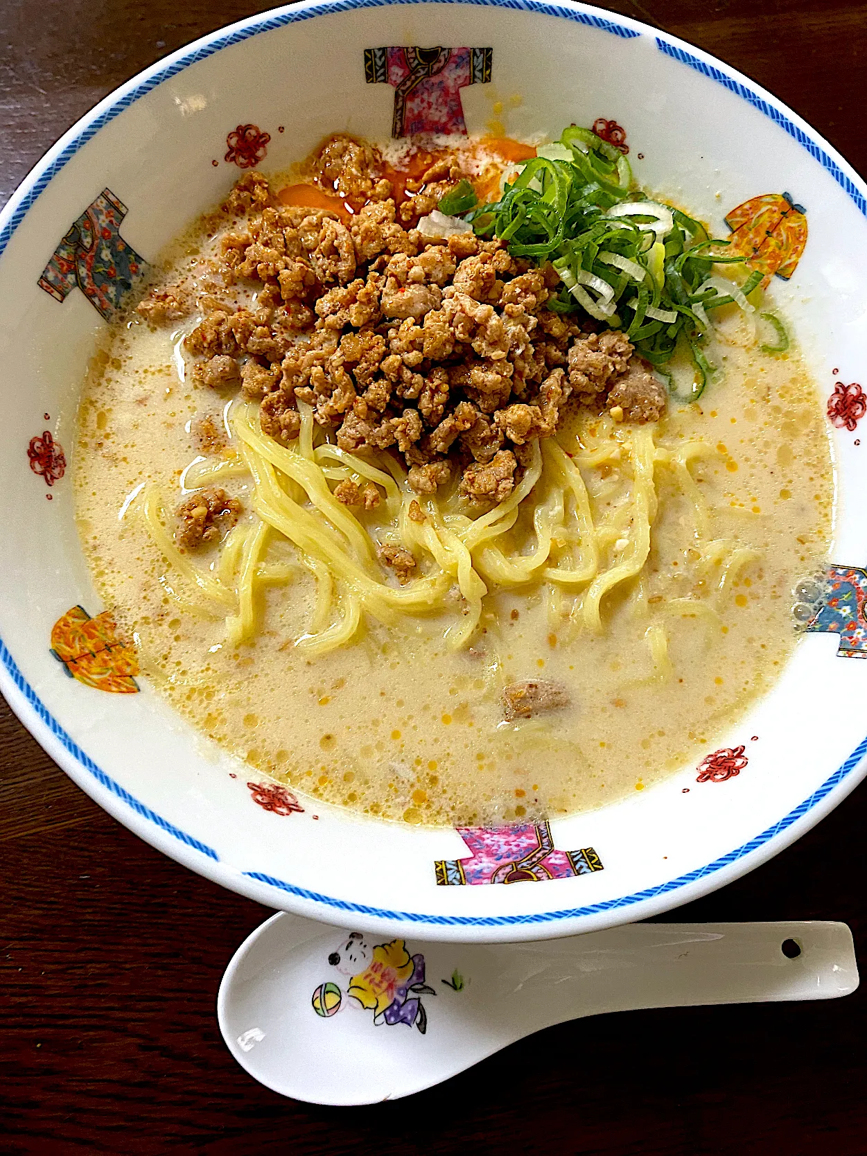 お腹の調子が少し良くないので、優しい味の担々麺を作りました🍜 青梗菜がなかったのでネギで代用。練り胡麻もなかったので胡麻ドレ入れたら十分コクが出ました😋 最近作ったラーメンのなかではなかなか良かった🎵