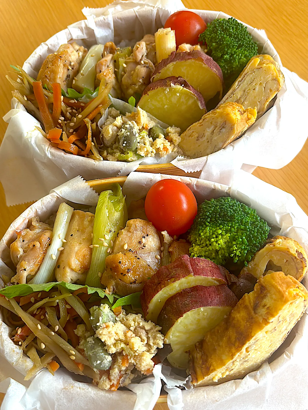 #中高生弁当 #お弁当 #卵焼き #焼き芋 #焼き鳥 #卯の花 #きんぴらごぼう
