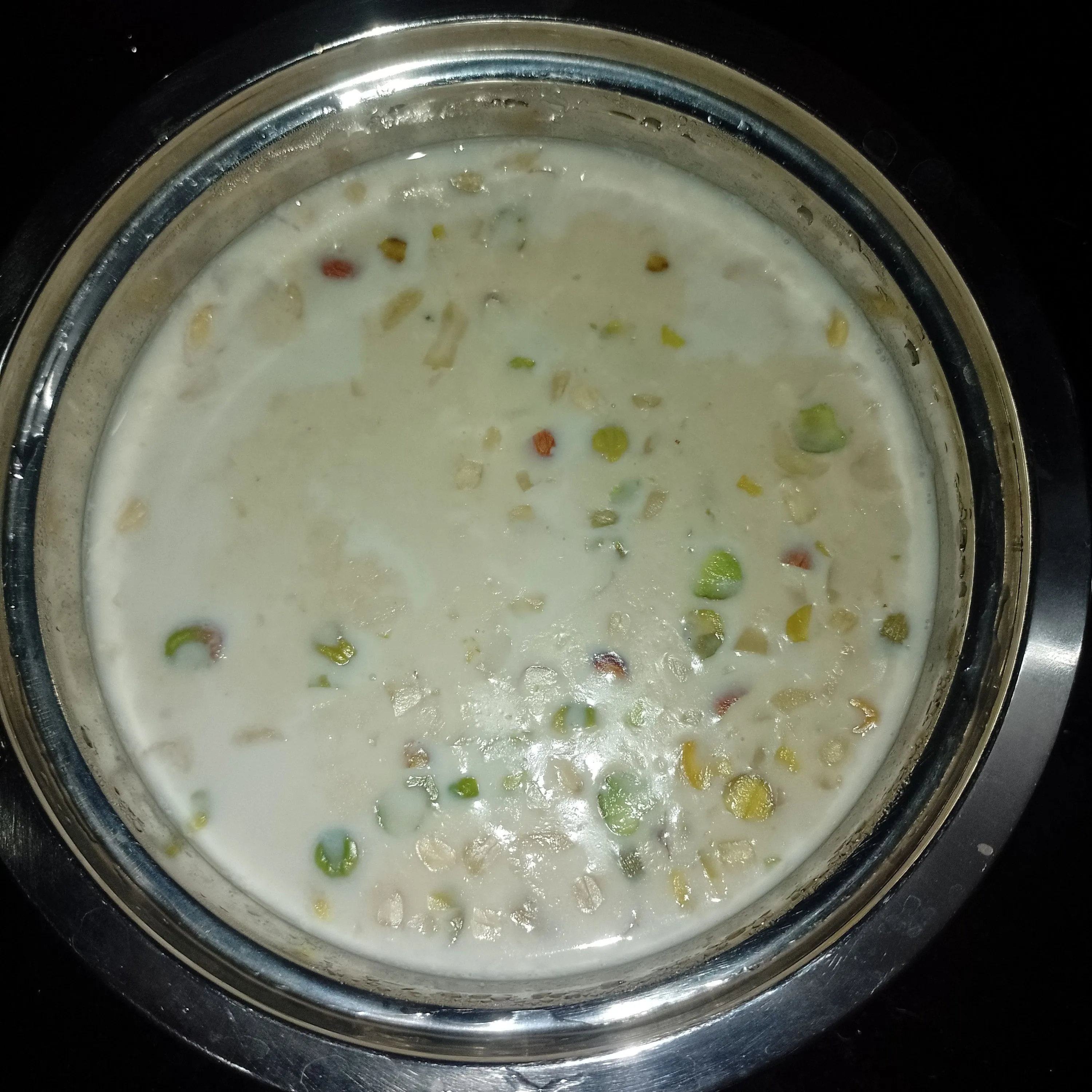 Boil 1/2 liter milk after that add soaked rice 🍚 and cook it for 15 mins on medium high flame . Stir the kheer continuously so that milk does not gets stick to pan
